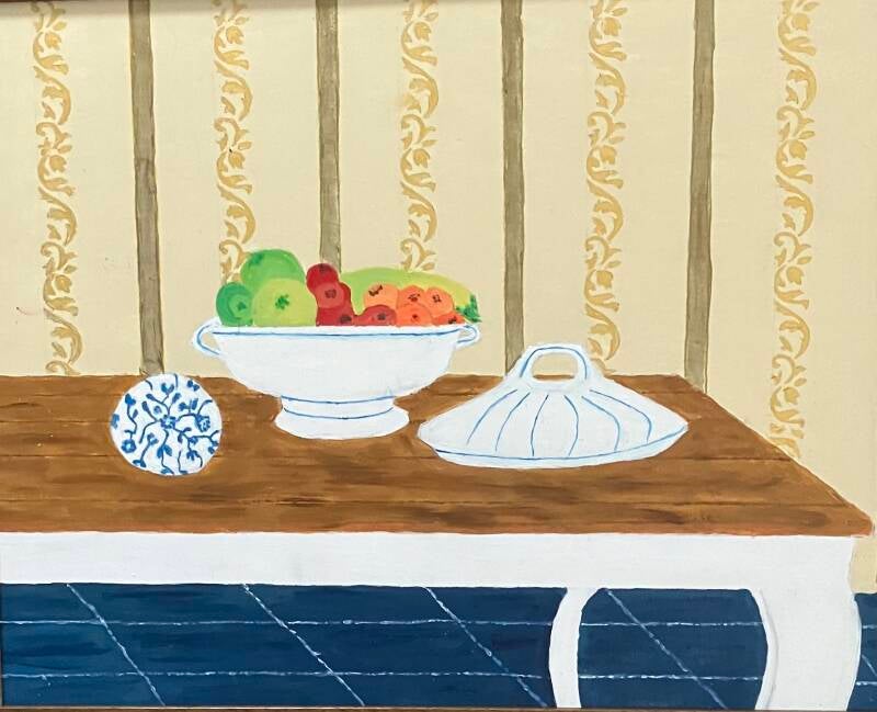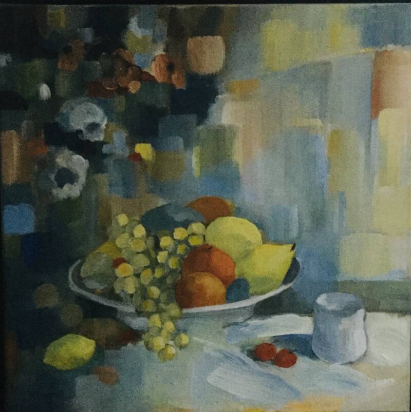 Mary Manikus schilderij stilleven fruitschaal deze is in mijn bezit