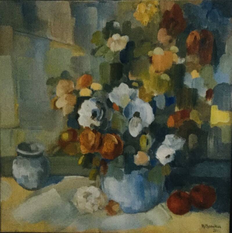 Mary Manikus schilderij stilleven met vaas met bloemen, deze is in mijn bezit